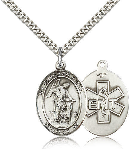 Sterling Silver Guardian Angel EMT Medal with Chain Pendant