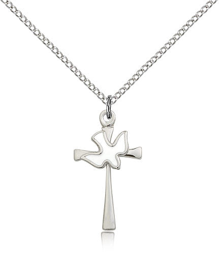 Sterling Silver Holy Spirit Cross Medal with Chain Pendant