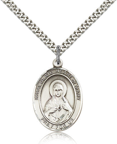 Sterling Silver Immaculate Heart of Mary Medal with Chain Pendant