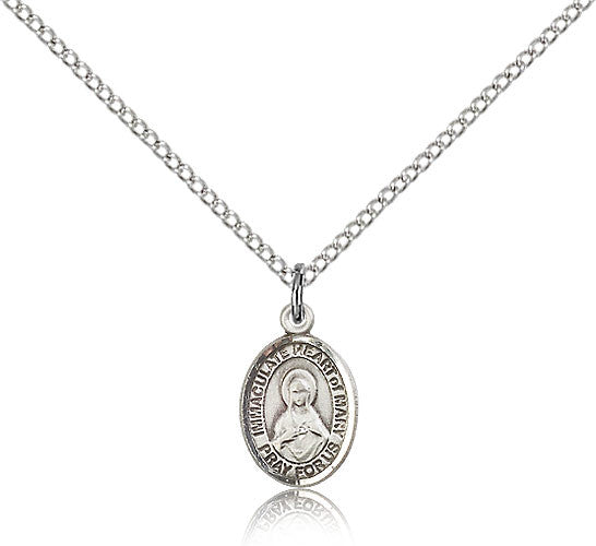 Sterling Silver Immaculate Heart of Mary Medal with Chain Pendant