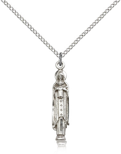 Sterling Silver Madonna and Child Medal with Chain Pendant