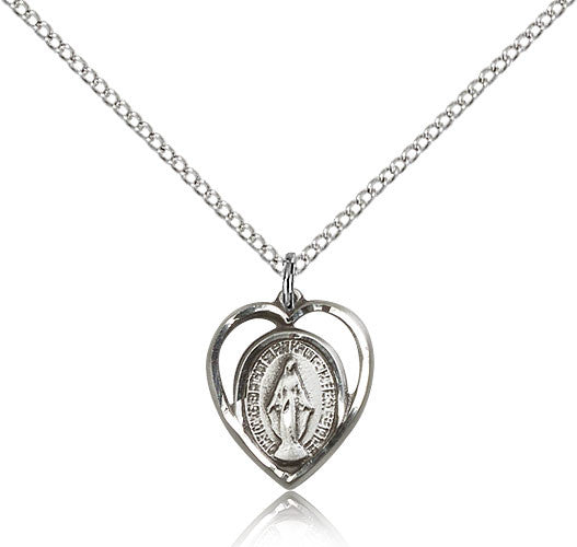 Sterling Silver Miraculous Heart Medal with Chain Pendant