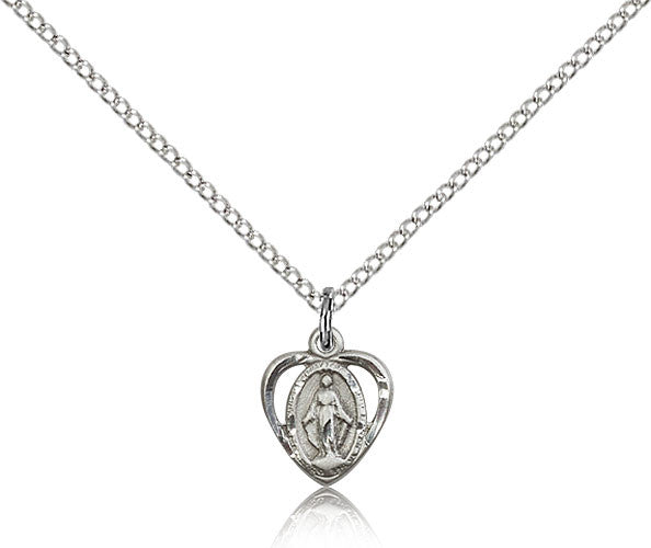 Sterling Silver Miraculous Heart Medal with Chain Pendant