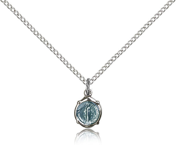 Sterling Silver Miraculous Medal with Chain Pendant
