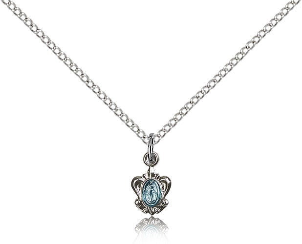 Sterling Silver Miraculous Medal with Chain Pendant