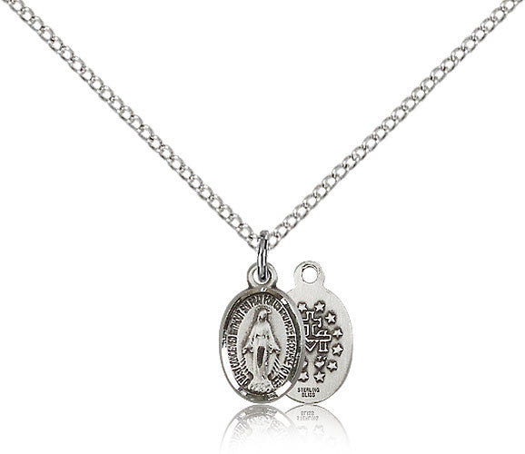 Sterling Silver Miraculous Medal with Chain Pendant