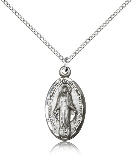 Sterling Silver Miraculous Medal with Chain Pendant