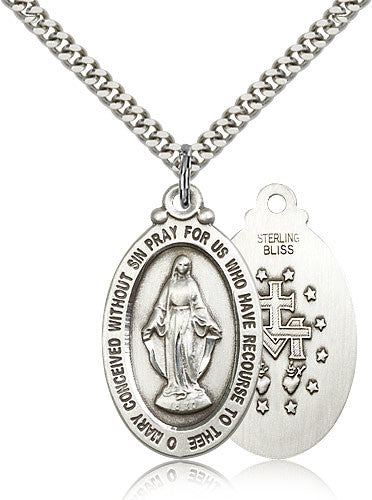 Sterling Silver Miraculous Medal with Chain Pendant