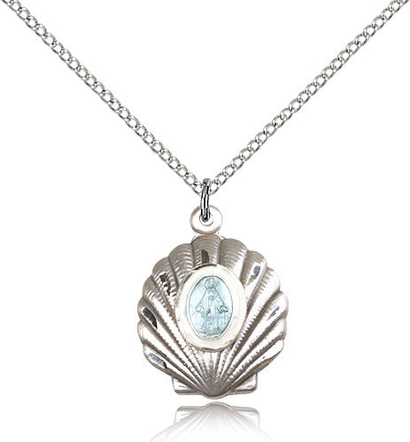 Sterling Silver Miraculous Shell Medal with Chain Pendant