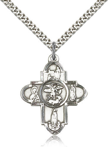 Sterling Silver Our Lady Five Way Medal with Chain Pendant