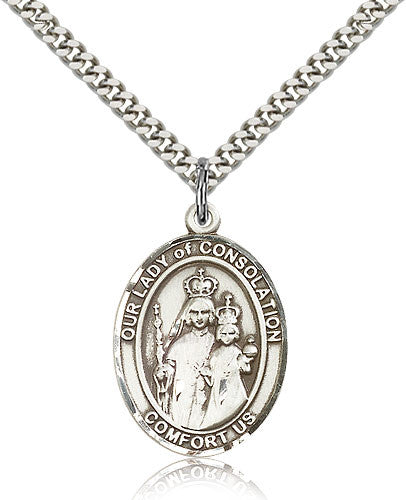 Sterling Silver Our Lady of Consolation Medal with Chain Pendant Large
