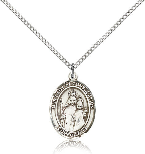 Sterling Silver Our Lady of Consolation Medal with Chain Pendant Medium