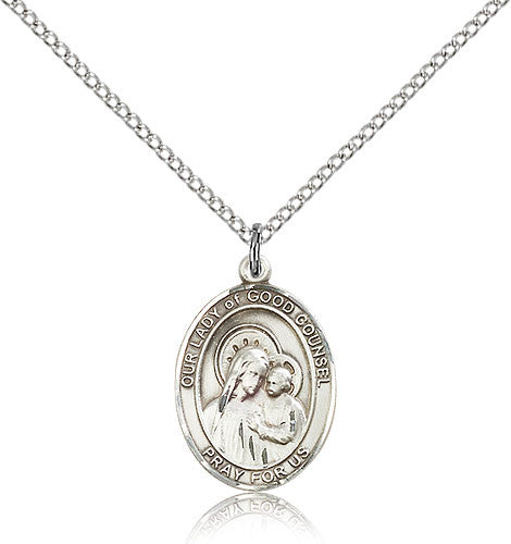 Sterling Silver Our Lady of Good Counsel Medal with Chain Pendant Medium