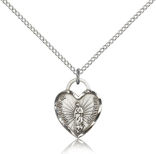 Sterling Silver Our Lady of Guadalupe Heart Medal with Chain Pendant