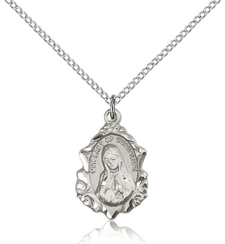 Sterling Silver Our Lady of Guadalupe Medal with Chain Pendant