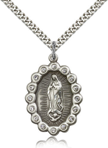 Sterling Silver Our Lady of Guadalupe Medal with Chain Pendant