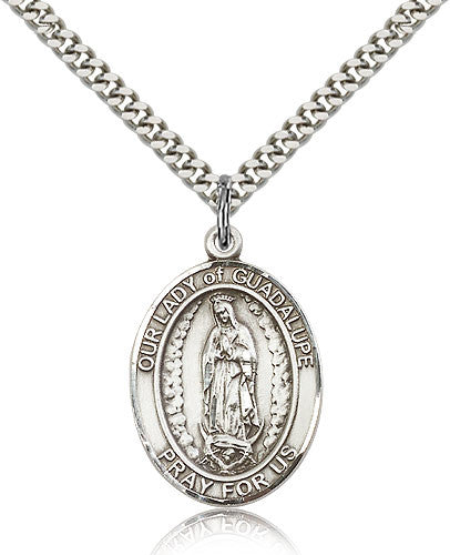 Sterling Silver Our Lady of Guadalupe Medal with Chain Pendant Large