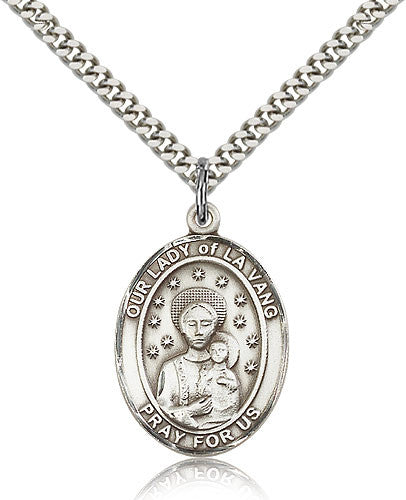 Sterling Silver Our Lady of La Vang Medal with Chain Pendant Large