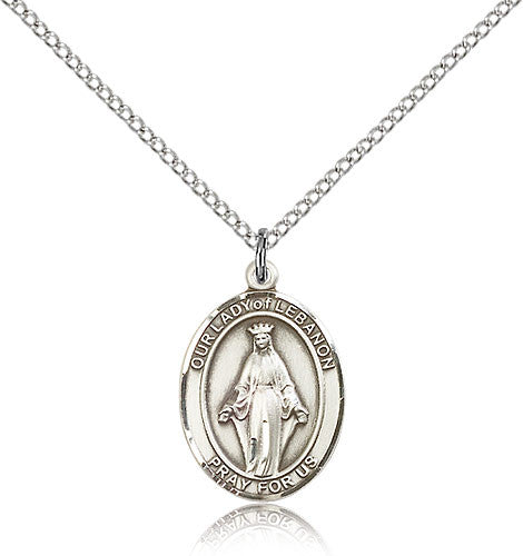Sterling Silver Our Lady of Lebanon Medal with Chain Pendant Medium