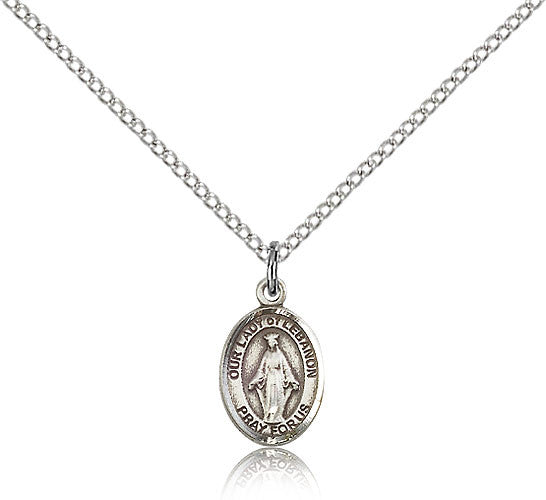 Sterling Silver Our Lady of Lebanon Medal with Chain Pendant Small