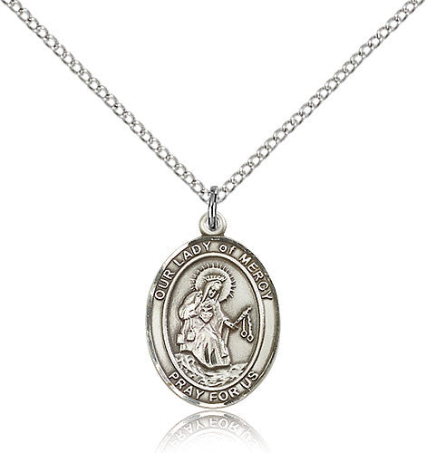 Sterling Silver Our Lady of Mercy Medal with Chain Pendant Medium