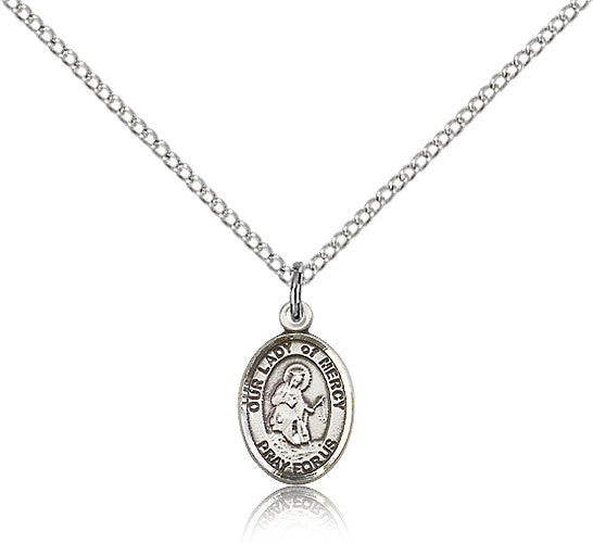 Sterling Silver Our Lady of Mercy Medal with Chain Pendant Small