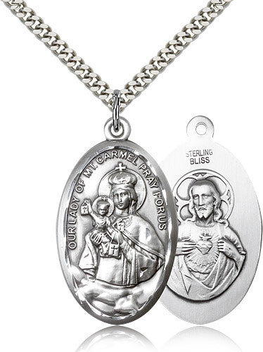 Sterling Silver Our Lady of Mount Carmel Medal with Chain Pendant