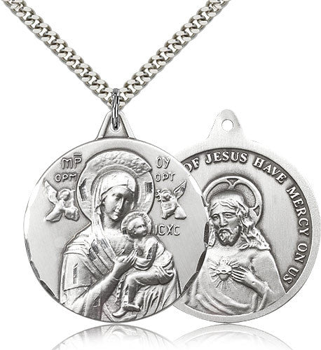 Sterling Silver Our Lady of Perpetual Help Medal with Chain Pendant