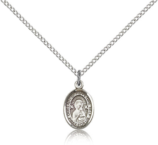 Sterling Silver Our Lady of Perpetual Help Medal with Chain Pendant Small