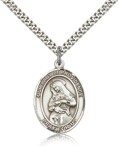 Sterling Silver Our Lady of Providence Medal with Chain Pendant Large
