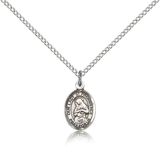 Sterling Silver Our Lady of Providence Medal with Chain Pendant Small