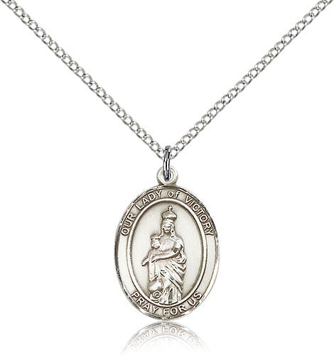 Sterling Silver Our Lady of Victory Medal with Chain Pendant Medium