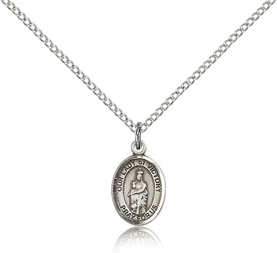 Sterling Silver Our Lady of Victory Medal with Chain Pendant Small