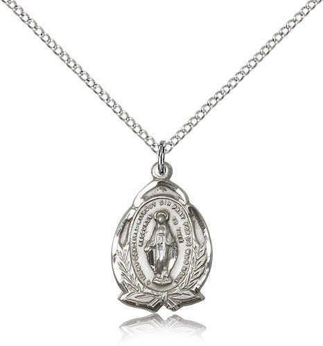 Sterling Silver Sacred Heart of Jesus Medal with Chain Pendant