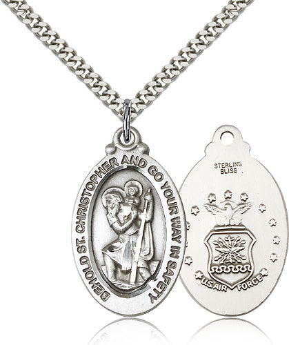 Sterling Silver St. Christopher Air Force Medal with Chain Pendant