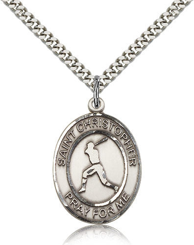 Sterling Silver St. Christopher Baseball Medal with Chain Pendant