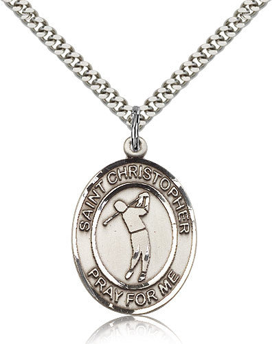 Sterling Silver St. Christopher Golf Medal with Chain Pendant