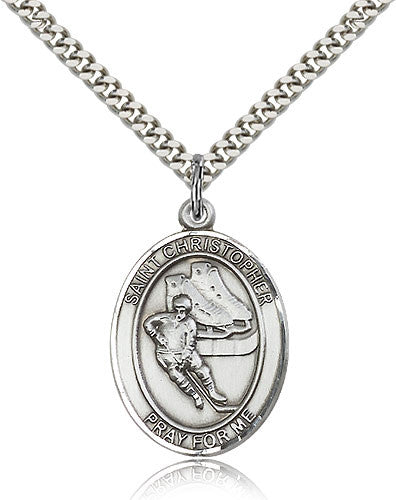 Sterling Silver St. Christopher Hockey Medal with Chain Pendant