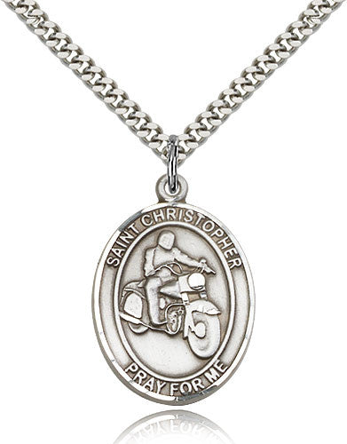 Sterling Silver St. Christopher Motorcycle Medal with Chain Pendant