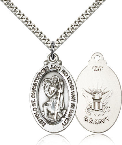 Sterling Silver St. Christopher Navy Medal with Chain Pendant