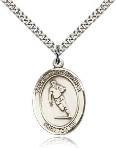 Sterling Silver St. Christopher Rugby Medal with Chain Pendant