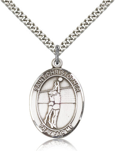 Sterling Silver St. Christopher Volleyball Medal with Chain Pendant