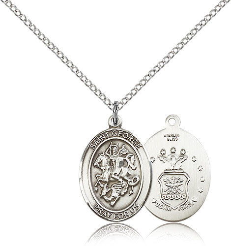 Sterling Silver St. George Air Force Medal with Chain Pendant