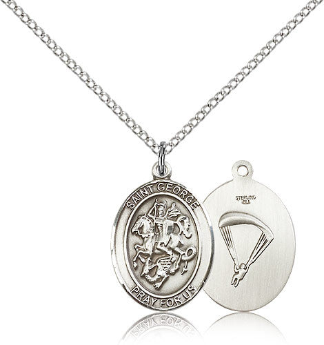 Sterling Silver St. George Paratrooper Medal with Chain Pendant