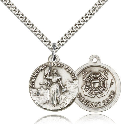 Sterling Silver St. Joan of Arc Coast Guard Medal with Chain Pendant