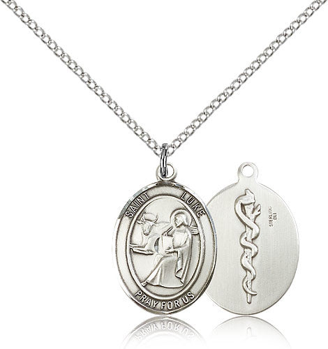 Sterling Silver St. Luke the Apostle Doctor Medal with Chain Pendant
