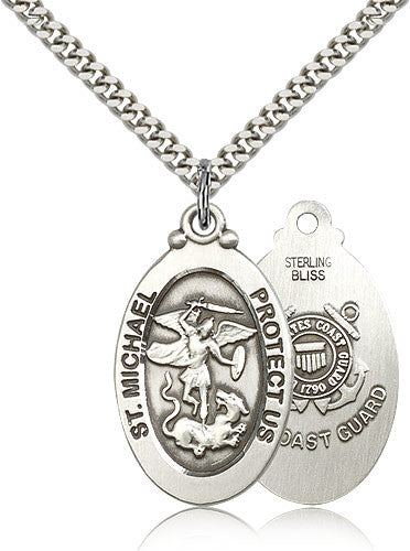 Sterling Silver St. Michael the Archangel CoaSt.Guard Medal with Chain Pendant