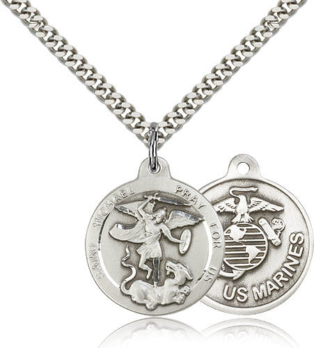 Sterling Silver St. Michael the Archangel Marines Medal with Chain Pendant