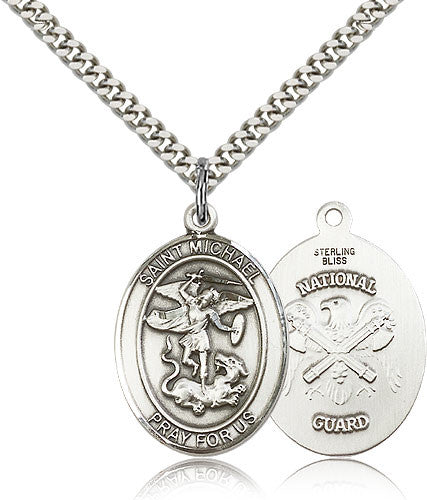 Sterling Silver St. Michael the Archangel National Guard Medal with Chain Pendant