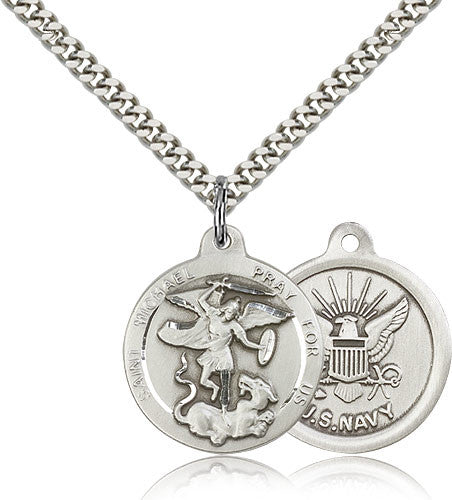 Sterling Silver St. Michael the Archangel Navy Medal with Chain Pendant